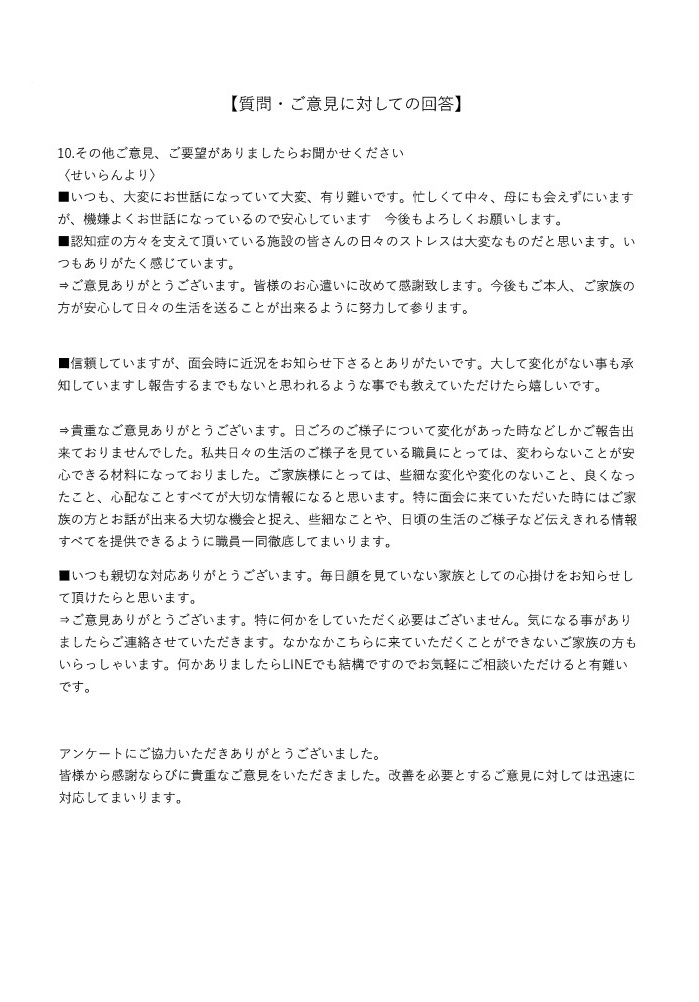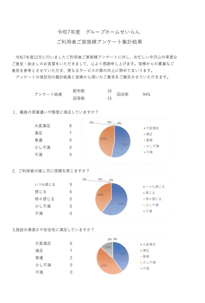 2026-03-05令和6年度 グループホームせいらん ご利用者、ご家族様アンケート集計結果